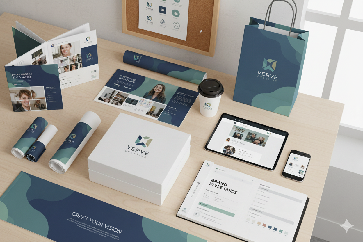 We provide photoshoot guidance, banners, mockups, logos, and a complete brand kit to create a professional, cohesive brand identity.