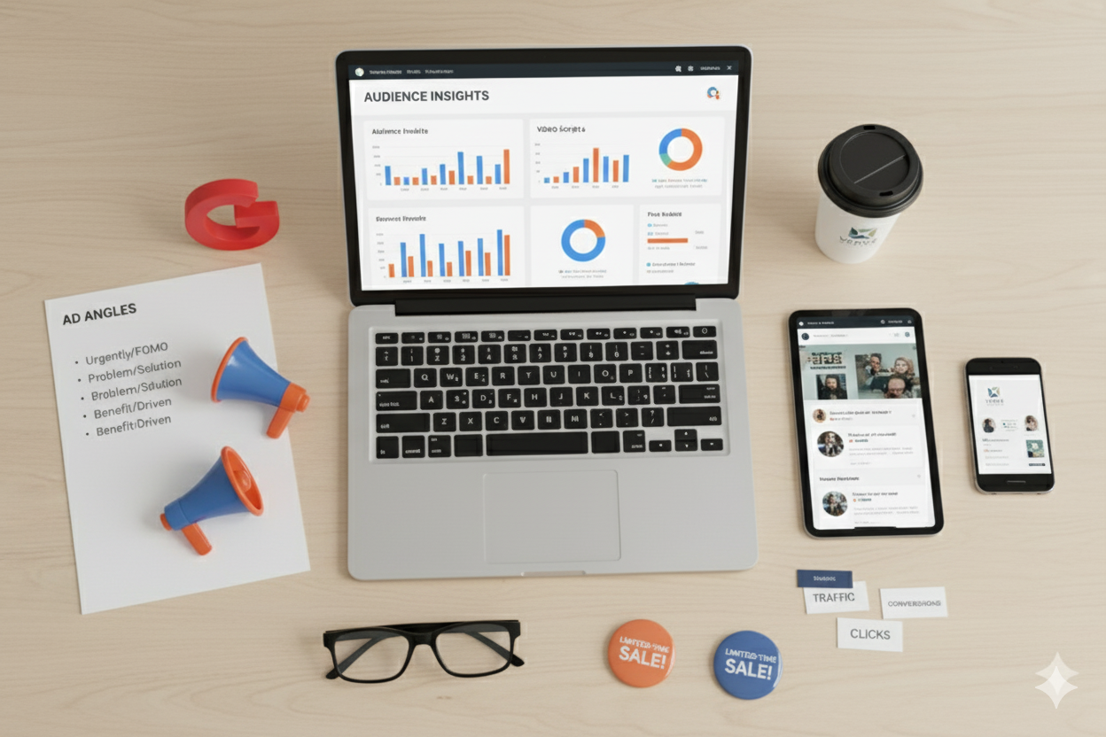 We provide ad angles, audience insights, video scripts, and ready-to-use creatives for Meta & Google to jumpstart your sales